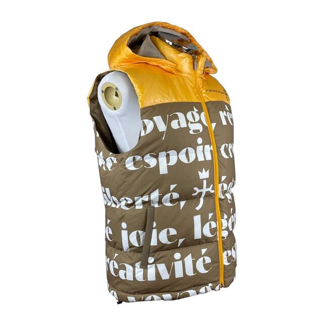 秋冬のライフスタイルをお洒落に演出するカステルバジャックの軽量プリントダウンベスト。