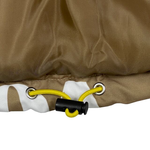 全体に施されたロゴプリントがモダンな印象を与え、フードは取り外し可能で、シーンに応じたスタイリングが楽しめます。