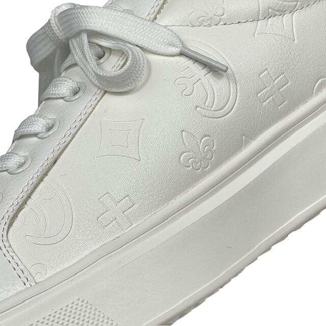 サイドと内側に家紋モノグラムが型押しで入り 高級感あるスニーカーです。