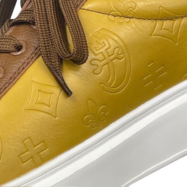 サイドと内側に家紋モノグラムが型押しで入り 高級感あるスニーカーです。
