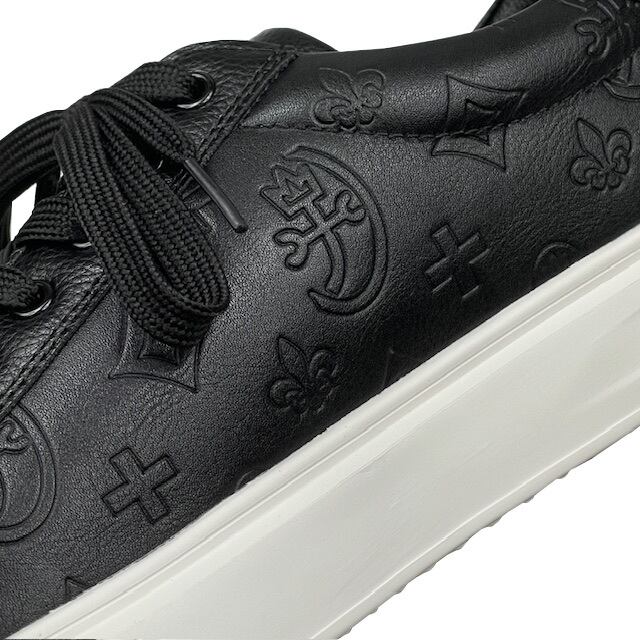 サイドと内側に家紋モノグラムが型押しで入り 高級感あるスニーカーです。